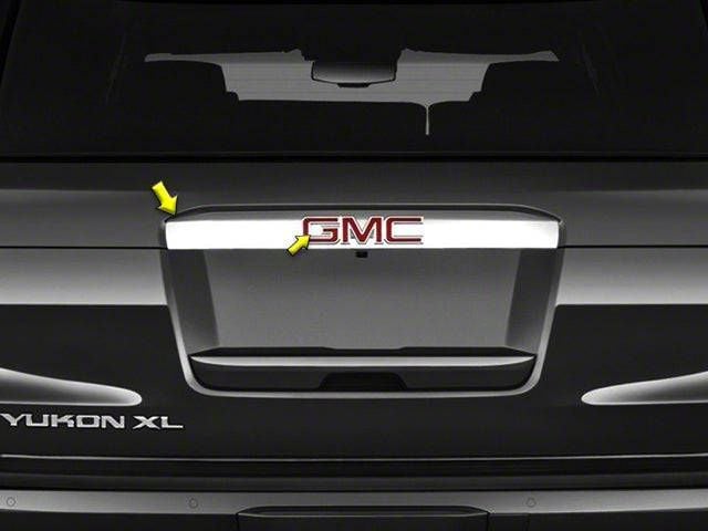 Stylish Rear-End Enhancement. The Upper Hatch Cover with Logo Cutout is designed to deliver a clean, upgraded appearance to the rear hatch of your GMC Yukon. With a direct-fit design, this stylish accent piece installs easily and elevates the factory look with a polished chrome-plated finish and integrated logo cutout. It's an ideal addition for owners looking to add a custom touch without compromising OEM fitment.