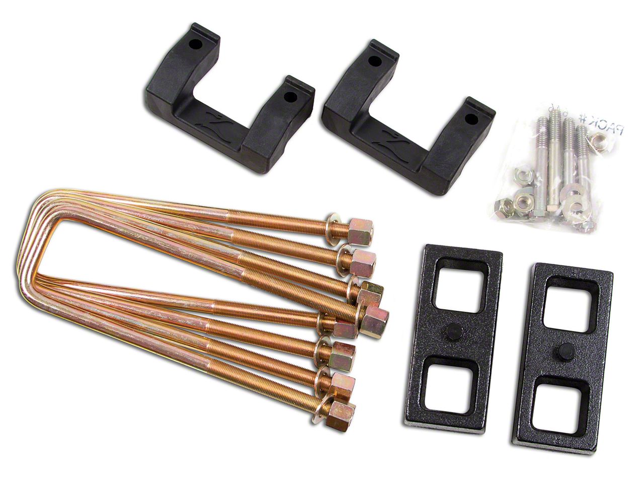 Unmatched Performance. The Zone Offroad 2” Suspension Lift Kit allows you to comfortably achieve a modest 2” lift will not only look good but come in handy by allowing you to clear rough terrain and fitting large tires – up to 33”. In all this, your truck's handling and balancing are not affected negatively. As a matter of fact, the precision cut parts improve your trucks balance and handling on rough terrain.