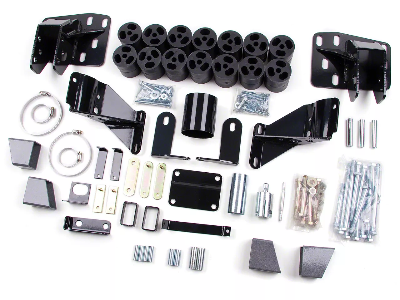 Heavy-Duty Construction. Components of this kit are fashioned from high-strength materials. It features durable thermoplastic synthetic resin body blocks for supporting your truck’s weight. The kit’s components feature a smooth finish that prevents rust and corrosion. Nonetheless, you cannot use this kit for towing applications since it is only meant for enhancing your RAM’s aesthetics.