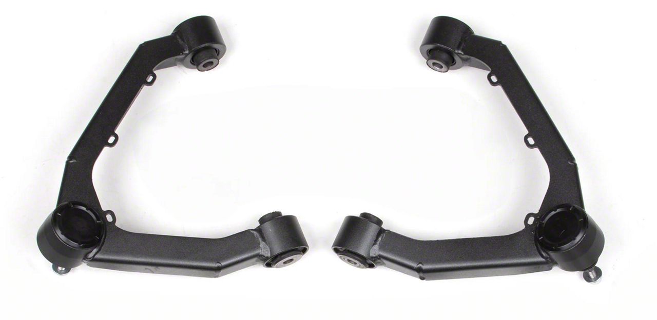 Lifted Suspension Control and Strength. The Zone Offroad Adventure Series Upper Control Arm Kit is engineered to restore proper alignment and improve suspension performance on lifted or leveled Colorado Trail Boss and ZR2 models. With optimized geometry and durable construction, this kit ensures better ball joint positioning, added strength, and longer service life in off-road and daily driving conditions.