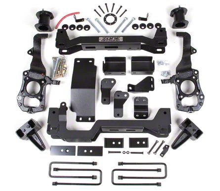 To Greater Heights. Stand out among the rest with an added lift height to your truck and a new aggressive look with the Zone Offroad 4-Inch Front/2-Inch Rear Suspension Lift Kit with FOX Shocks. Experience enhanced handling performance, better off-road protection, a more comfortable ride, and an eye-catching new look with a clearance that can handle up to 35 inches of tires.