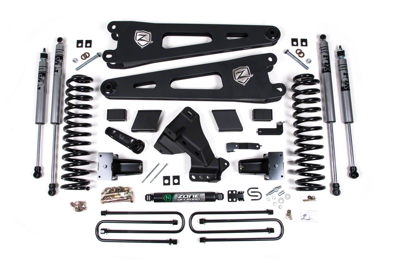 Extreme Lift and Suspension Performance. The Zone Offroad Radius Arm Suspension Lift Kit is engineered to provide an aggressive 7-inch lift, enhancing ground clearance and off-road capability for your Ford F-250 Super Duty. With premium suspension components, this kit ensures improved handling, stability, and ride comfort.