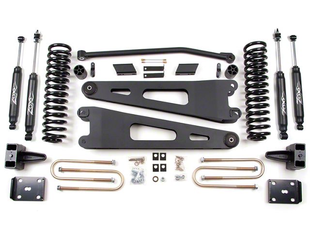 Improves Off-Road Performance. While your Super Duty is designed to tackle off-road trails, you can boost its off-road performance by installing this Zone Offroad 4-Inch Radius Arm Suspension Lift Kit with Nitro Shocks. This kit highlights its radius arms and Nitro shocks which help in providing better vehicle handling and a more comfortable ride. What’s more, adding this suspension lift kit lets your truck exhibit a more aggressive look with its newly adjusted height.