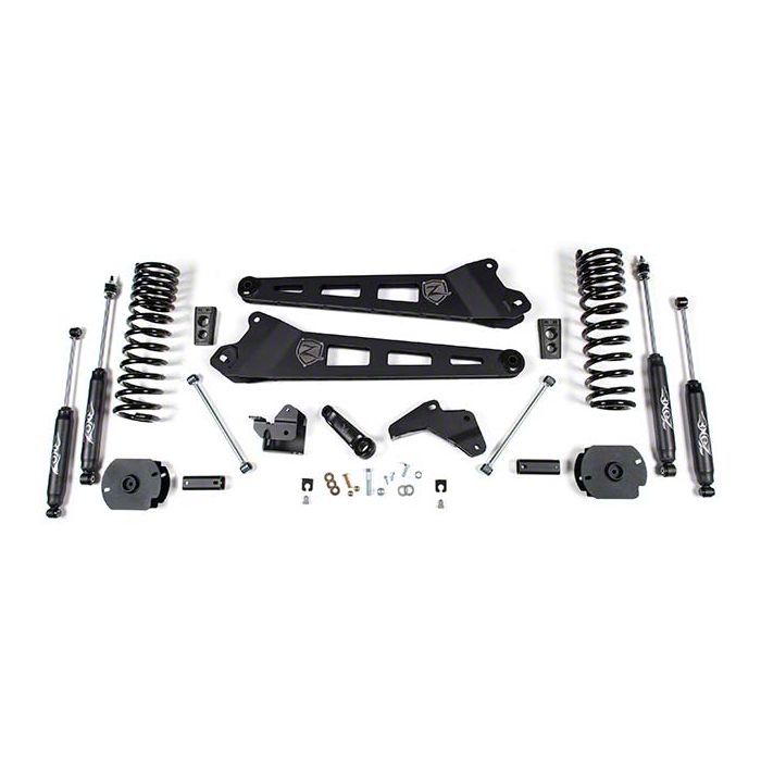 Application. This 4.50-Inch Radius Arm Suspension Lift Kit with Nitro Shocks from Zone Offroad is compatible with all 2014-2018 4WD 6.7L RAM 2500s without Air Ride, excluding Power Wagon models.