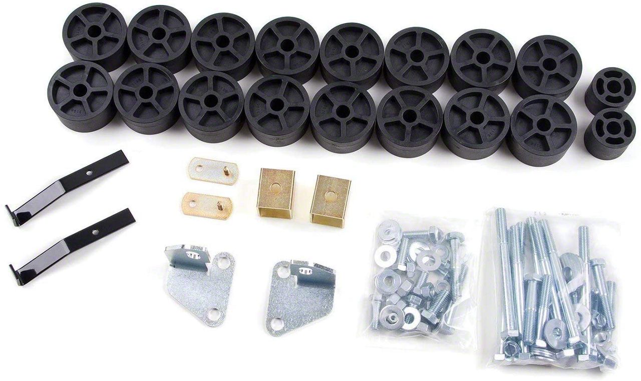 An Incredibly Durable Kit. The Zone Offroad 1.50-Inch Body Lift Kit includes indestructible body blocks, heavy-duty 10.9 automotive body bolts, and high-quality pieces of hardware. Thanks to these durable components, the kit delivers a formidable lift performance that isn’t easily buffeted by the most challenging road conditions.
