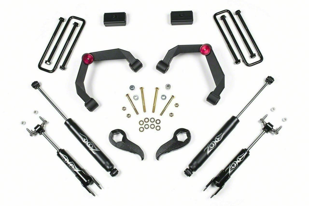 The Rest of the Kit. This Zone Offroad 3-Inch Adventure Series Upper Control Arm Suspension Lift Kit with Nitro Shocks comes with front differential relocation brackets to correct the CV axle operating angle. Sway bar relocation bracket keep clearance, while 2-inch rear lift blocks and U-bolts level the stance.
