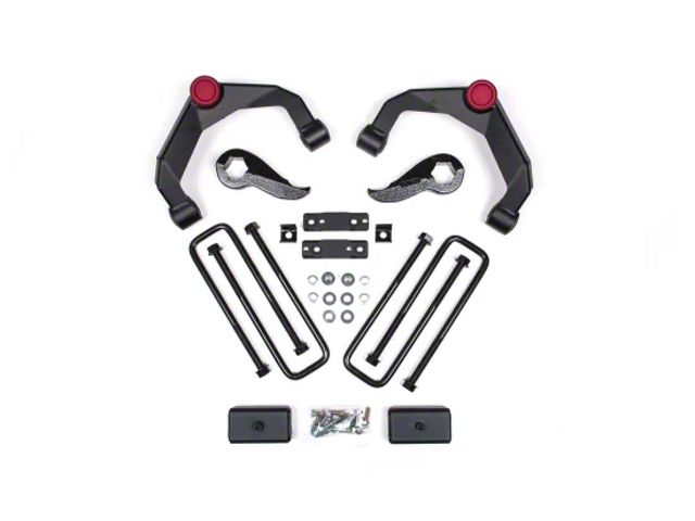Improved Off-Road Performance. Made for the Sierra 3500 HD models with factory overload springs, this Zone Offroad Adventure Series Upper Control Arm Suspension Kit comes in a matte black finish. Built to give your ride a front lift of 3 inches and a rear lift of 2 inches, this kit includes Fox shocks, high-strength boxed and welded upper control arms, cast torsion bar keys, sway bar and differential relocation kits, and rear lift blocks.
