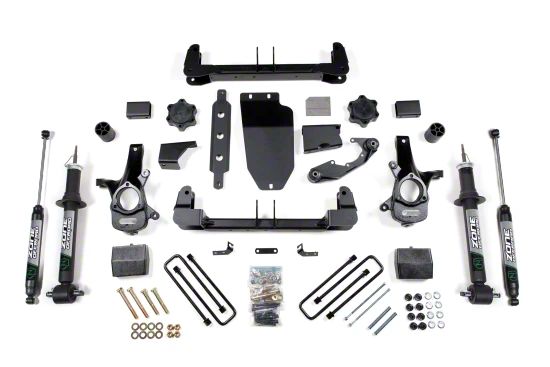 Full Lift Kit. Made to give your 4WD Chevrolet Silverado 1500 with stock cast aluminum or stamped steel control arms a full body lift, this Zone Offroad Strut Suspension Lift Kit provides a front lift of 6.50-inches and a rear lift of 5-inches. Built using steel, this kit is a complete kit that includes steering knuckles, cross members, drop brackets, spacers, lift blocks, and installation hardware.