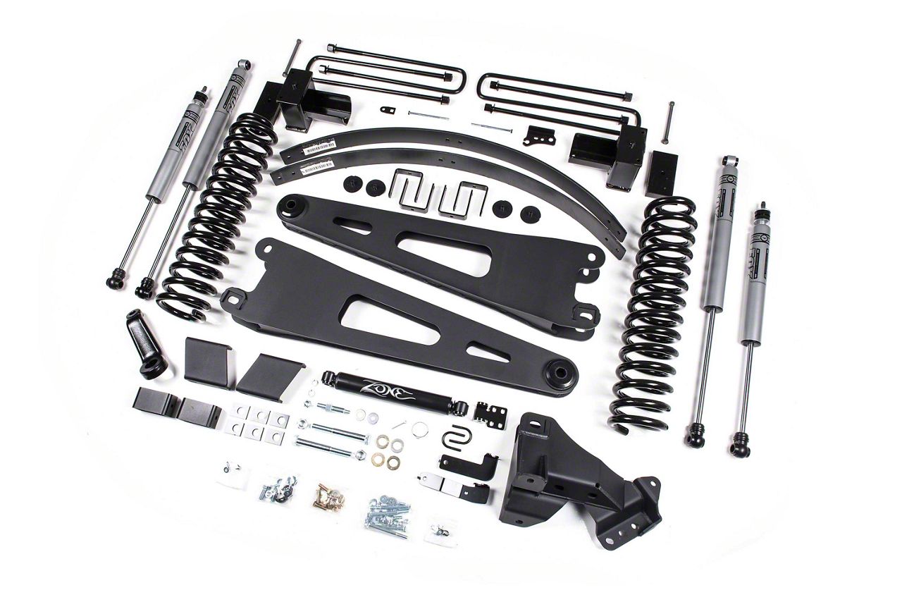 Application. This 6-Inch Radius Arm Lift Kit with Nitro Shocks from Zone Offroad is compatible with all 2017-2022 4WD 6.7L Powerstroke Ford F-250 Super Duty models.