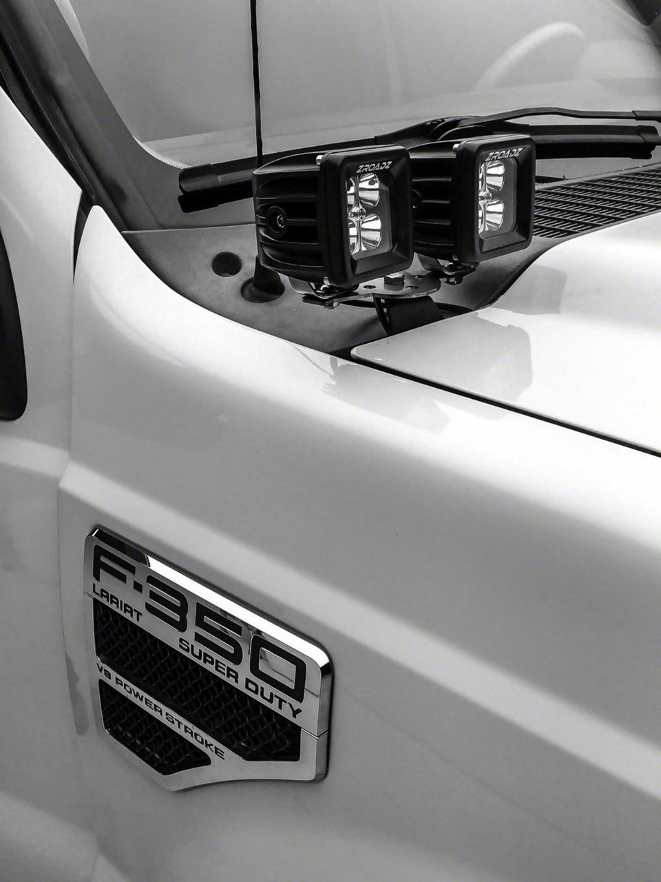 Stable and Durable Mounts for Hood Lights. If you want to install LED cube lights on your Super Duty's hood, just near the A-pillars, these ZRoadz Four 3-Inch LED Cube Light Hood Hinge Mounting Brackets are the way to go. Each bracket can accommodate 1 or 2 LED cube lights each, so you can customize the look of your truck and the amount of light you’ll get.